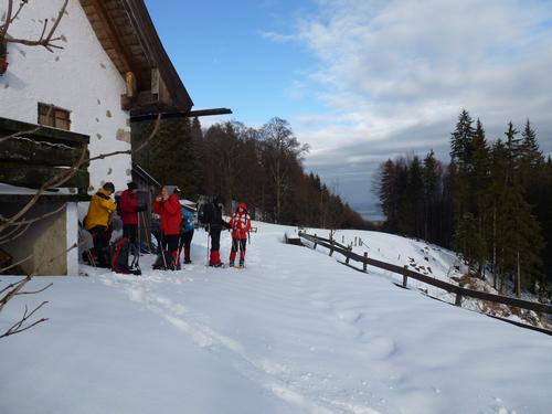 Staffnalm 22.1.2012 Staffnalm Die Tour zur Angerlalm wurde wegen Lawinengefahr abgesagt, dafür gingen wir zur Staffnalm. Tourenbeschreibung: Von Grassau (grüne Wiesen) um den Einöder Berg zur Hefteralm. Ab da mit Schneeschuhen um den Großstaffen zur Staffnalm. Nach der Einkehr ging’s über die Hufnagelalm und Plezen hinunter nach Grassau. Wir hatten Sonne, Regen, Schneefall und Windböen. Teilnehmer: 9 Tourenleiter: Sepp Brandstetter |