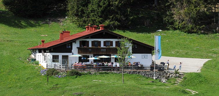 Einkehrmöglichkeit besteht“. Möseralm oder Traunsteiner Hütte
