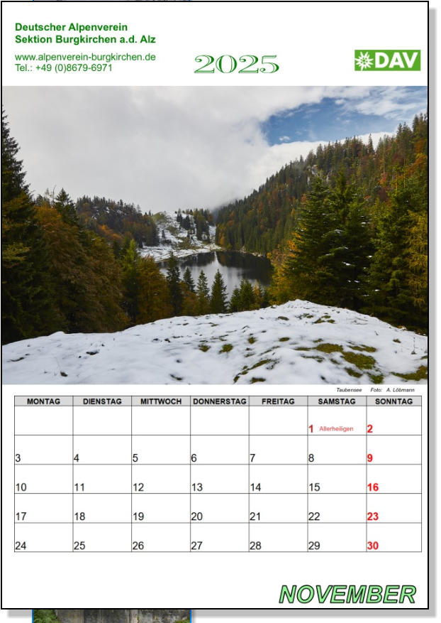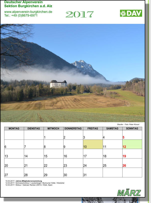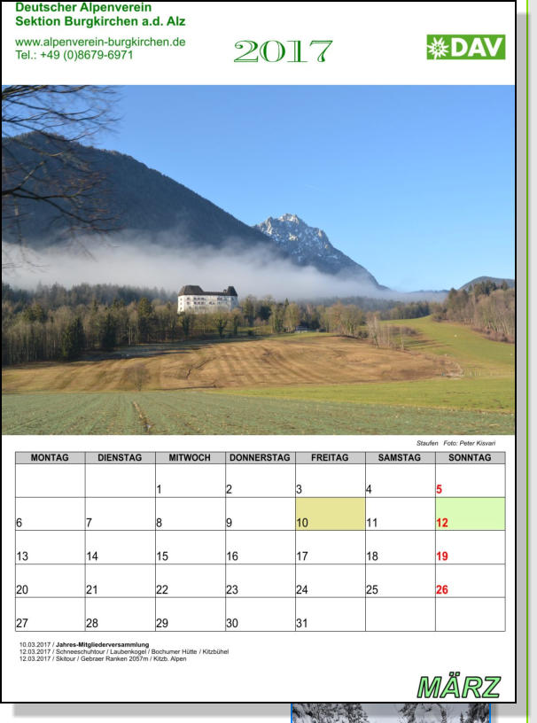 Dieser Wandkalender, im Format 30 X 42 cm, wurde aus Bildern, von Sektionsmitgliedern erstellt.